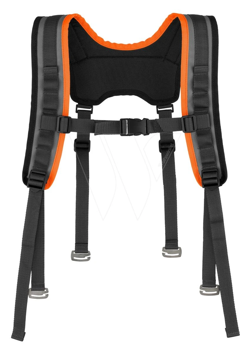 Dankzij de gevoerde schouderbanden verdeelt het harnas de belasting gelijkmatig over de schouders.