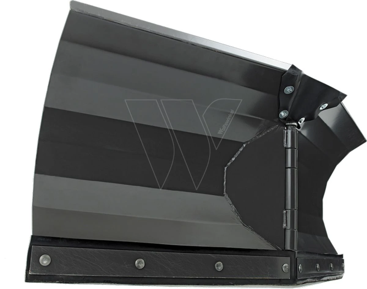 Compacte en flexibele knikbare ploeg in zware stalen uitvoering. Mechanische instelling van de messen voor gebruik als V-ploeg, punt ploeg of diagonale ploeg. Voorzien van rubberen blad.